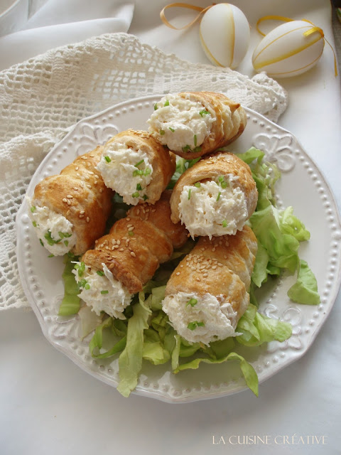 Sastojci: 250 g lisnatog testa, 1 srednji celer, 2 dl kisele pavlake, limunov sok, so, biber, 1 jaje za premazivanje, susam