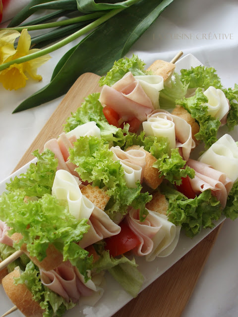 Ideja: napravite omlet od 5-6 jaja i ispecite ga u manjem plehu u rerni. Pleh treba prethodno dobro zagrejati i poprskati sa malo ulja. U smesu sa jajima možete staviti kašiku-dve seckanog začinskog bilja po želji, soli i bibera po ukusu. Tako pripremljeni omlet isecite na tri trake, premažite nadevom po želji i složite kao tortu. Zatim isecite na kockice i ukrasite čeri paradajzićima i rendanom šargarepom.:)