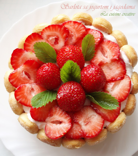 Pravila sam je odmah cim su se pojavile prve jagode i znala sam da ce nam se dopasti.:) Lagana za pripremu, osvezavajuca, jedino sto morate sacekati neko vreme da se krema stegne... ali vredi cekati (mozete je staviti u zamrzivac da malo ubrzate proces;). Verujem da bi isto bilo fino napraviti i sa malinama ili nekim drugim vocem, mozda cak i posluziti u casama... samo glasno razmisljam.:)